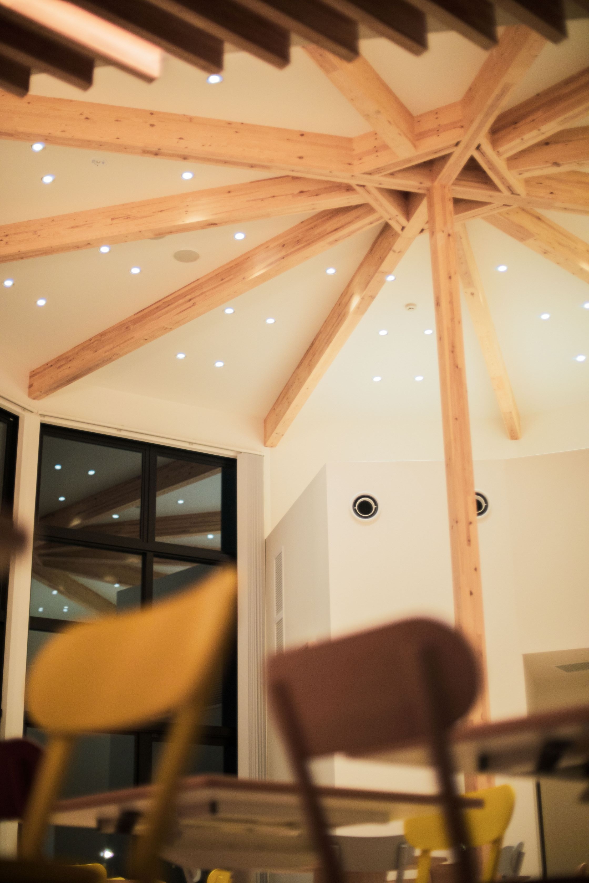 柔らかな木材の質感と調和し、訪れる人を暖かく迎え入れる。